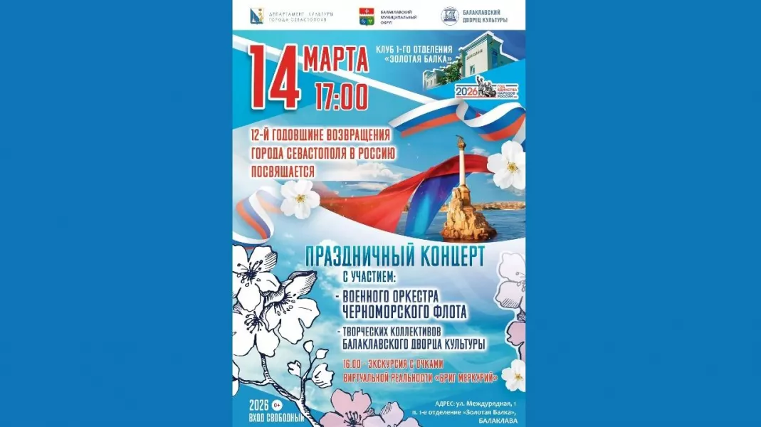 Приглашаем на праздничное мероприятие в честь 12-й годовщины возвращения Севастополя в Россию!