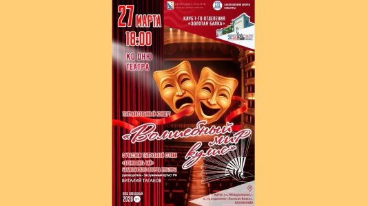 Театрализованный концерт, посвящённый Дню театра. В программе вечера: сценические миниатюры в исполнении руководителя коллектива, заслуженного артиста РФ, артиста театра и кино Виталия Таганова; выступления участников театральной студии «Время пить чай».